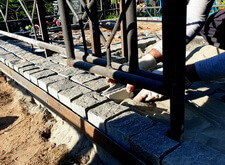 Получившиеся линии были отсыпаны пескобетоном, после чего настало время укладывать брусчатку.