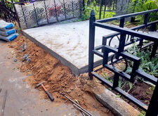 Первым делом мы демонтируем памятник, цветник, снимаем оградку, разламываем прилегающую к дорожке бетонную полосу. Затем выставляем опалубку по периметру участка.